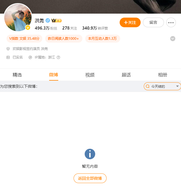有网友发现在洪尧的社交平台搜索不到结婚相关贴文,有人认为是设置了贴文开放日期,也有人怀疑贴文被删除,二人婚姻关系引发猜测。